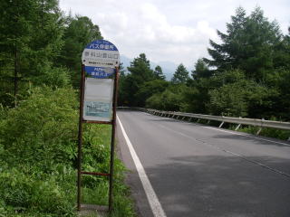 | 後続のメンバーはバスに間に合わないので、先行するメンバーに、先にバスに乗って蓼科湖に行くように指示するため、リーダーは急いで追いついてくれた。ご苦労様。リーダーはここで後続のメンバーを待ってタクシーで蓼科湖へ。 |