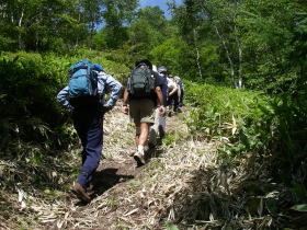 | 休憩舎の廃屋のあるところで宿で作っていただいたおにぎりをいただき、白樺湖に向かう。白樺湖ではバスの時刻までには時間があったので、すずらんの湯で汗を流してサッパリとする。 茅野では3時に店を閉めるというそば屋に頼んで開けてもらい、打ち上げをしました。 このグループでのハイキングは2回目ですが、3日も続けて歩いたので何かずっと昔から一緒に歩いていたような気分にさせていただきました。次回のハイキングが楽しみです。 |