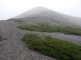 | 不動岳の山頂を見上げる |