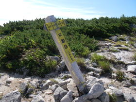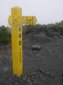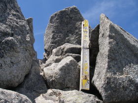 | 烏帽子岳山頂の道標 |