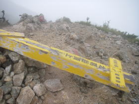 | 不動岳の道標。山頂はなだらかで、この道標は登山道脇の山頂らしくないところにある。 |