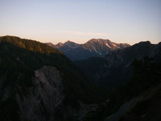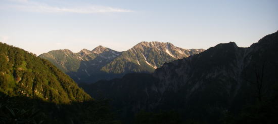 | 前日にはすぐそばに行っても見えなかった針ノ木岳も見えた。 |