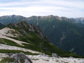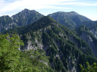 | 南沢岳から見る水晶岳、赤牛岳 |