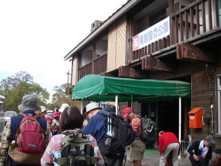 | 尾瀬林業にお願いして、東電小屋やバスの手配をしていただいての旅行。紅葉真っ盛りの3連休中とあって交通渋滞の影響を受ける。地元のバスだったので、昭和ICで下り、裏道を通って沼田街道に出、また吹割滝の手前で裏道に入ったりと運転手さんの大活躍で渋滞を避けながら鳩待峠に着いた。それでも予定より1時間半遅れていた。 鳩待峠では、これも手配していただいていた鳩待山荘で昼食をとる。ごった返している鳩待峠でまったく待つことなくゆったりと昼食がとれるなんて、これまでの山行では経験をしたことがない贅沢。 |