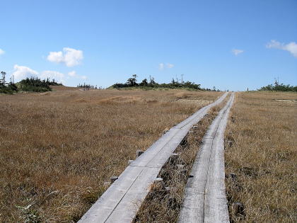 | 私の学生時代には、踏み荒らされて裸地化が進み保護のためにアヤメ平への立ち入り禁止の議論が起こっていた。 そんな頃、一度ここに見に来たことがある。当時は木道はなく裸地化のひどさを目の当たりにした。その後東京電力を中心に植生回復の事業が行われてきたようだが、今もその事業が続いているのに驚いた。回復には長い長い時間が掛かることを知り、まず荒らさないようにすることの大切さを肝に銘じよう。 |