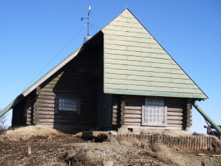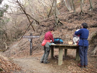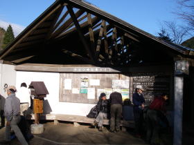 | 三ノ塔の休憩所。風が冷たいので中に入って休憩をとり、コーヒーを沸かして飲む。鍋割山荘泊なのでゆっくりできるのがよい。 |