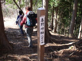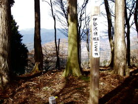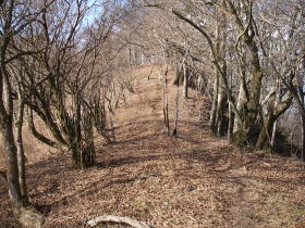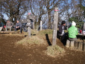 | 烏尾山山頂。ここは霜柱ができる頃は霜どけでドロドロになっていることが多いが、今日はほぼ乾いた状態で非常に歩きやすい。 |