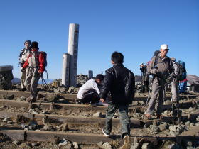| 新大日。書策小屋手前の風の弱いところで昼食をとったが、ここも風が弱く日向ぼっこ休憩をしているように見受けられた。 |