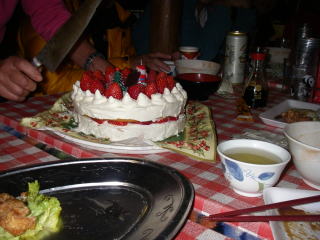 | デコレーションケーキ、クラッカーにキウイ、クリームなどをのせたカナッペなどが出て食べきれなかった。 |