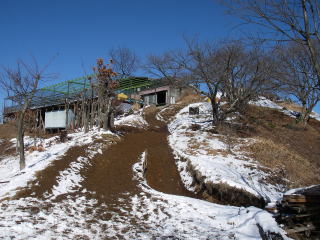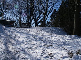 | 陣馬山。南斜面は雪が融けてどろどろ。 |
