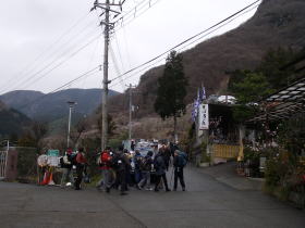 | 湯河原梅林が近づくと、幕山公園の方から多くの人が上がってくる。 |
