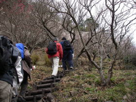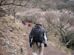 | 梅林を抜けて幕山へ。梅林には幕山へのハイキングの道の他に散策路が沢山ある。どの道を通っても上へ上へと進めば幕山に通ずる道に出るようだ。 |