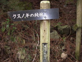 | 一の瀬橋のちょっと手前にあったクスノキの純林への散策路の分岐 |