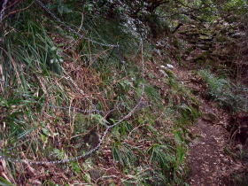 | 歩いた結果崩落したところはなかった。道幅が狭いところはあったがそこには鎖が付けてあった。通行不可というのは大げさすぎで、戻ってしまった人は騙されたようなものだ。 |