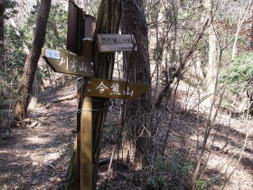 | 豆佐嵐山分岐と書かれた道標。舟子尾根を辿る道の分岐らしい。 |