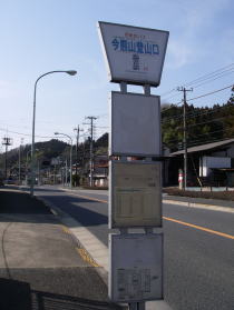 | 今熊山登山口バス停。時刻表を見ると30分ほどの待ち時間で武蔵五日市駅行きのバスがあった。歩いても同じ時間くらいに到着しそうだが、待つことにした。 |