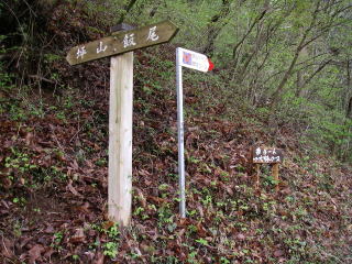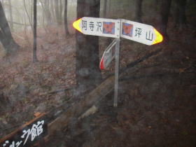 | 安寺沢分岐の道標。分岐から見ると安寺沢への道は落ち葉に埋もれているようで、踏み跡らしきものも見あたらなかった。 |
