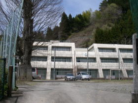 | 旧西原中学校。びりゅう館の駐車場の入口にバスの転回に使うので中学校の校庭を使うように書いてあった。学校の入口には坪山登山者駐車場と表示してあった。臨時の駐車場かいつも使えるかは分からない。 |