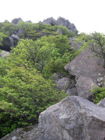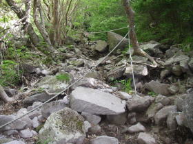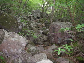 | 風穴への道はこんな岩の上を伝い歩くところが多い。 |