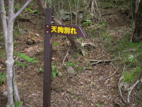 | この道標から天狗別れは近く、ここを左に進めば天狗分かれを通らずに高塚山に行ける。 |
