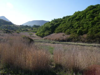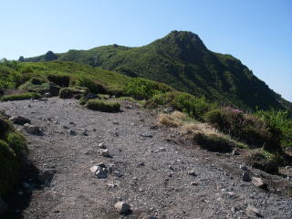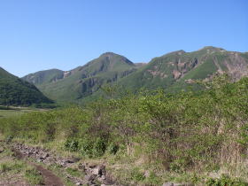 | 前日の夕方から降り出し、降ったり止んだりしていた雨は夜半には上がり、すっきりとした晴天に恵まれ、九重山地らしい灌木帯や草地の多いコースを眺望を楽しみながら歩くことができました。 |