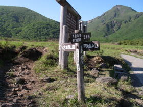 | 当初の予定では平治岳にも登ることにしていたが、前日高塚山に登ったついでに登ってしまったのと、好天に恵まれたことで余裕を持って長者原に下山できた。 |