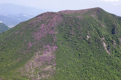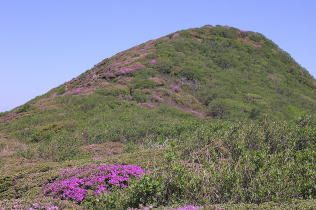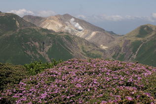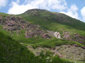| 三俣山の岩場に咲くミヤマキリシマ |