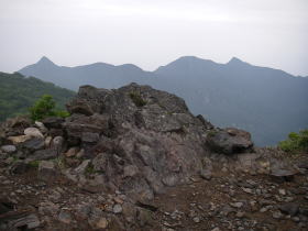 | 杖捨祠を過ぎると大箆柄岳らしき山が見えてくる |