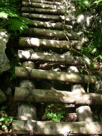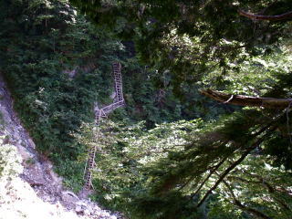 | 木製の階段や梯子は新しく、最近整備されたようだ。他にもロープが張ってあったり、ペイントマークがあったりと整備が行き届いている。 |