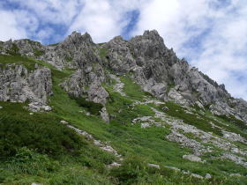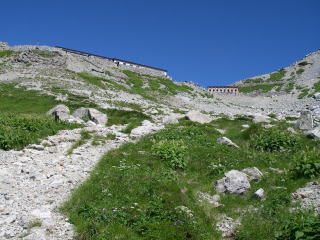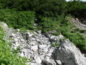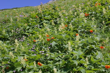 | 花の咲き乱れる登山道を一ノ越に向かう。花がたくさんあるので写真を撮るのに忙しい。 一ノ越には大勢の人がいるのが見えるが、この道を歩いている人はほとんどいなかった。 |