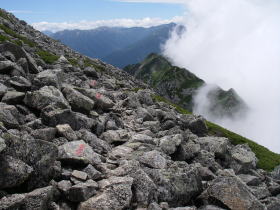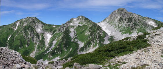 | 梅雨明け直後の長続きする好天が遅ればせながらやっとやって来たという感じで、北アルプスの夏山らしい眺望と花を存分に楽しんできました。 |