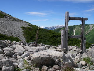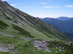 | 東一ノ越の景観。遠くに見えるのは薬師岳か。 |