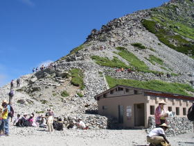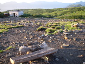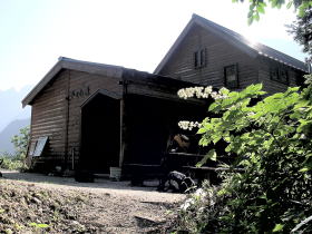 | 花の写真を撮りながらの歩きだったので、山荘に到着するのが遅くなるのを心配していたが、2時前には到着できた。 小屋の前でビールを呑みながら、太陽の位置によって景観が変わって行く様を見ていた。 |