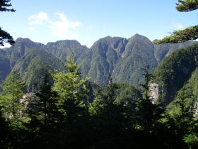 | 駒薙からの鋸岳方向の眺望。ここにも道標はなく、ちょっと高くなっていて岩が多く、展望が開けたので駒薙だと気付きました。 |