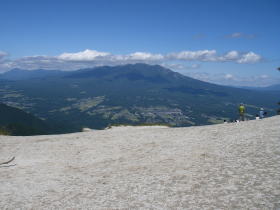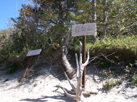 | 日向山の山頂は白い砂で覆われている。遠くの山は八ヶ岳。 |