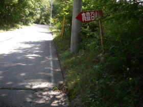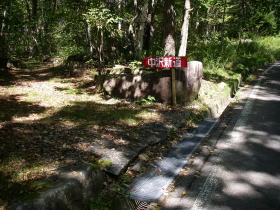 | 県道に通ずる道に出るところにある中沢新道の道標 |