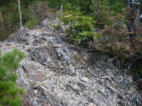 | 地図に天狗岩とある辺りの岩場。これらが天狗岩かどうかは分からなかった。 |