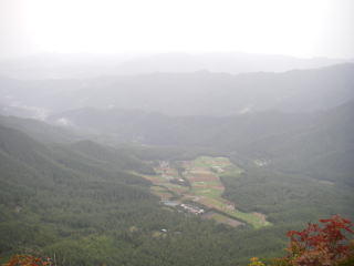 | 天狗山からの眺望。激しい雨ではないので川上村の畑がよく見える。 |