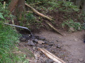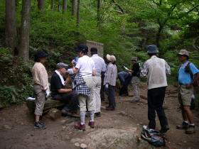 | ケーブルカーの御岳山駅から御岳神社付近にかけては人が多く、私たちがまとまって休めるような場所がないので御岳神社のお参りもせずにこの水場まで来て初めての休憩をしました。 |