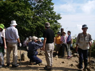| 大岳山の山頂は相変わらず賑わっていました。 トレイルランニングの大会か練習らしく、鋸尾根を駆け上ってくるランナーが大勢いて、山頂や大岳神社で休んでいるランナーもいました。 |