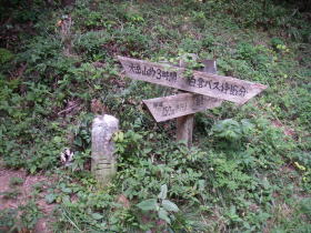 | 林道に出たところの道標。この先も登山道がありますが、膝の痛い人がいたのでここから林道を歩いて白倉のバス停へ行きました。 |