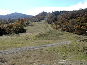 | 心配していたゴンドラは動いていました。前烏帽子岳からゴンドラの展望台駅に向かう道について聞くと、刈払いをしていないし、沢に下ってから展望台駅に行く道なので歩かない方がいいという返事でした。 食堂はやっていなかったが、軽食コーナーはやっていたのでまずは軽く昼食をとってからゴンドラに乗りました。 |
