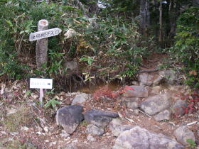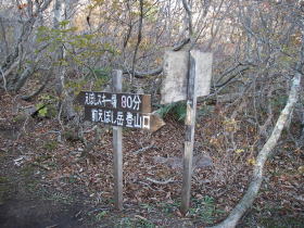 | 後烏帽子岳山頂間近にある前烏帽子岳分岐の道標 |