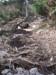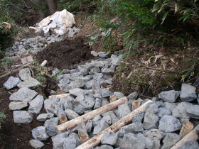 | 入口から山頂にかけての道はできたばかりの石段がたくさんあり、工事をやっているところもありました。 |