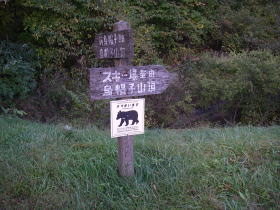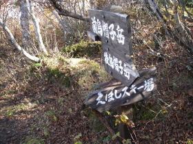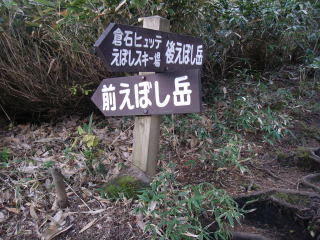 | えぼしスキー場分岐の道標。前烏帽子岳の山頂を示す道標も兼ねている。 |