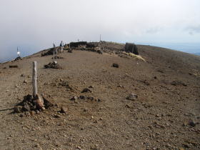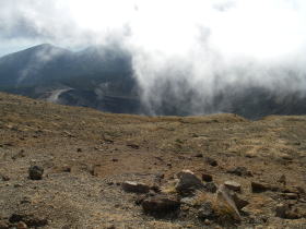 | 避難小屋付近からお釜の縁の稜線が見えた。昔来たときに刈田岳付近からお釜を見ているので割愛しました。 |