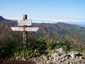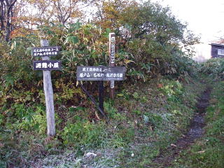 | 笹谷峠から無線中継所に向かうらしい道をちょっと進むと蔵王連峰縦走コースの道標があった。 |