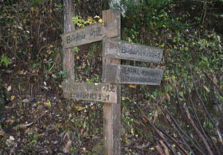 | 滝本の道標。ここからは車道歩き。 |