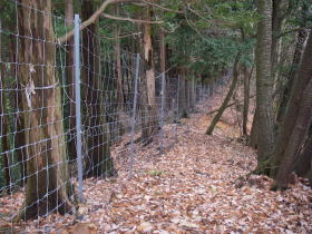 | 直ぐに鹿柵が現れ、しばらく柵沿いに歩く。 |