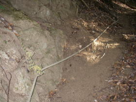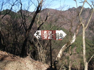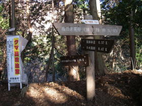| 浄発願寺奥の院分岐。近くに初心者不可と書いた大山、唐沢峠を示す道標あり。 |